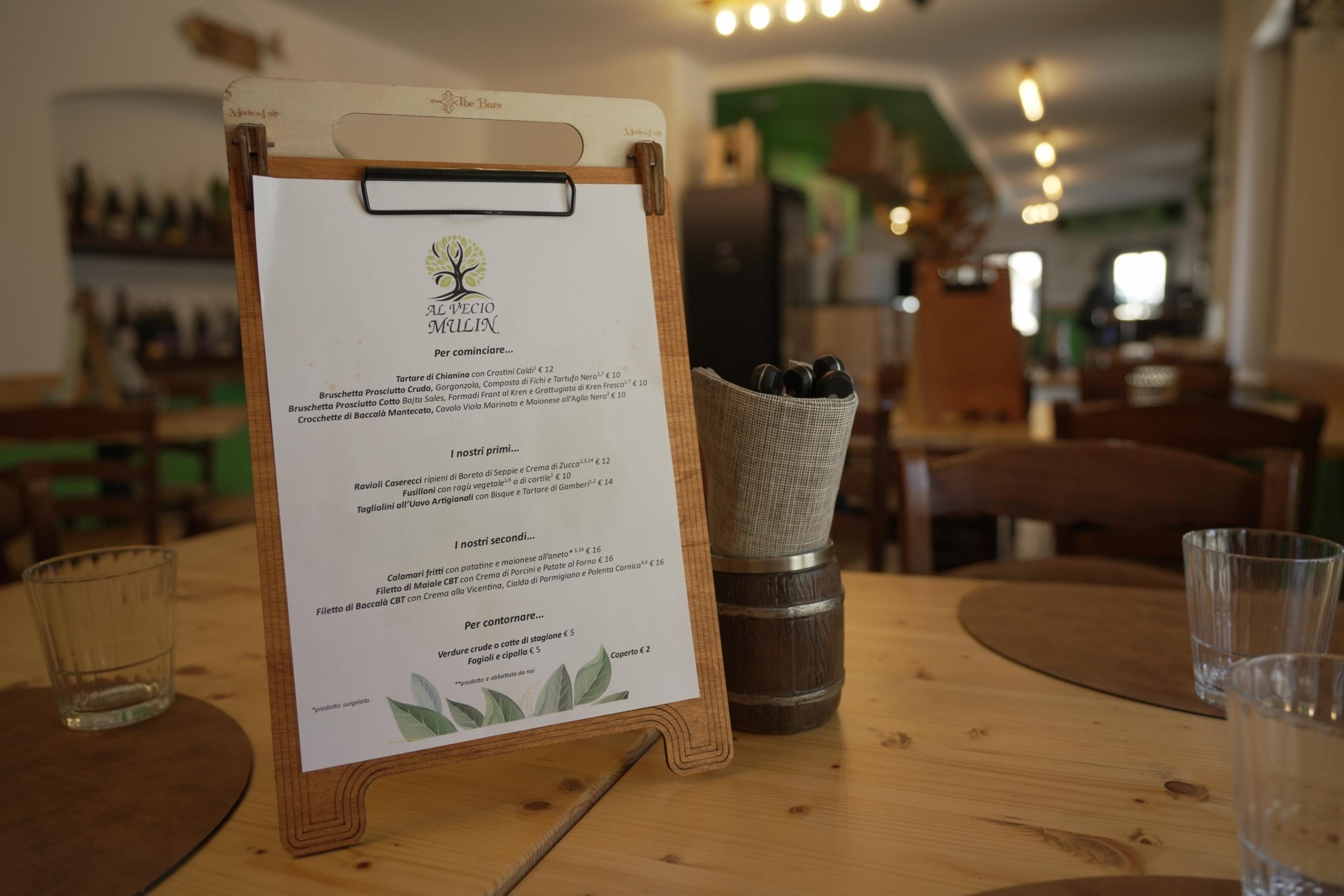 Benvenuti da Al Vecio Mulin, il nuovo ristorante, pizzeria e bar di San Lorenzo, aperto ad aprile 2025. Il nostro locale nasce dal desiderio di offrire un’esperienza autentica, curata e genuina, dove ogni piatto racconta il territorio e la passione per la buona cucina.